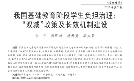 我国基础教育阶段学生负担治理:“双减”政策及长效机制建设