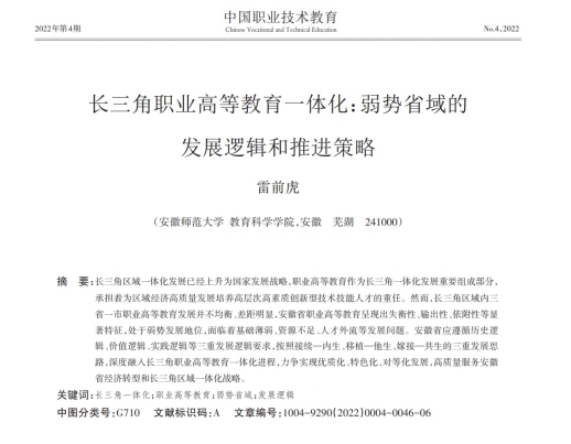 长三角职业高等教育一体化:弱势省域的发展逻辑和推进策略