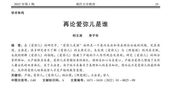 在《爱弥儿》的研究中,“爱弥儿是谁”始终是一个悬而未决和存在理论分歧的问题。究其原因,主要是:很多研究者不了解《爱弥儿》的主要定位,未发现《爱弥儿》与《理想国》的内在关联,未找到理解《爱弥儿》的钥匙;《爱弥儿》隐藏了卢梭的个人写作观念及原则;研究《爱弥儿》的部分资料阙如。从卢梭取名来看,爱弥儿具有模仿者的面孔。借助自私心与自爱心,卢梭为爱弥儿塑造了自然人兼公民的双重面孔。至于立法者,由于他不具备关于真理和人的真实知识,因而也不是爱弥儿的最终面孔。或许将爱弥儿培养成哲人才是卢梭的教育意图。