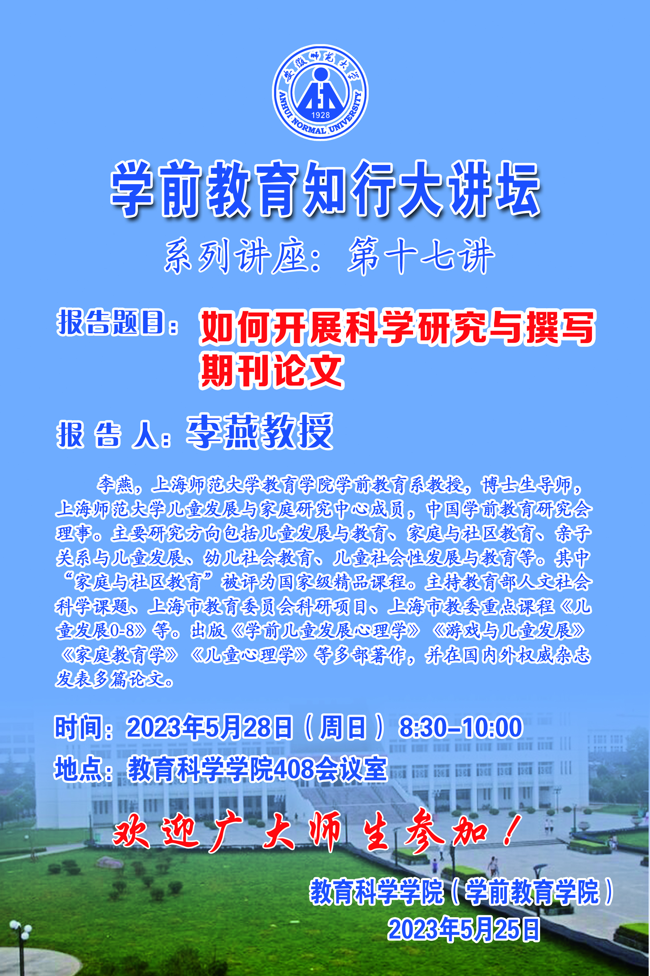【学前教育知行大讲坛第十七讲】上海师范大学李燕教授:如何开展科学研究与撰写期刊论文