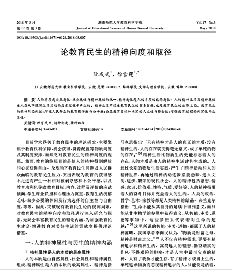 阮成武 徐雪莲:论教育民生的精神向度和取径
