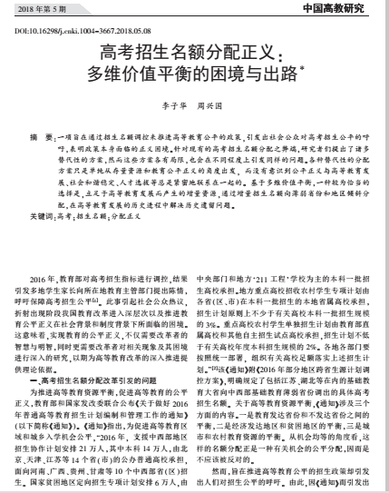 李子华 周兴国:高考招生名额分配正义:多维价值平衡的困境与出路
