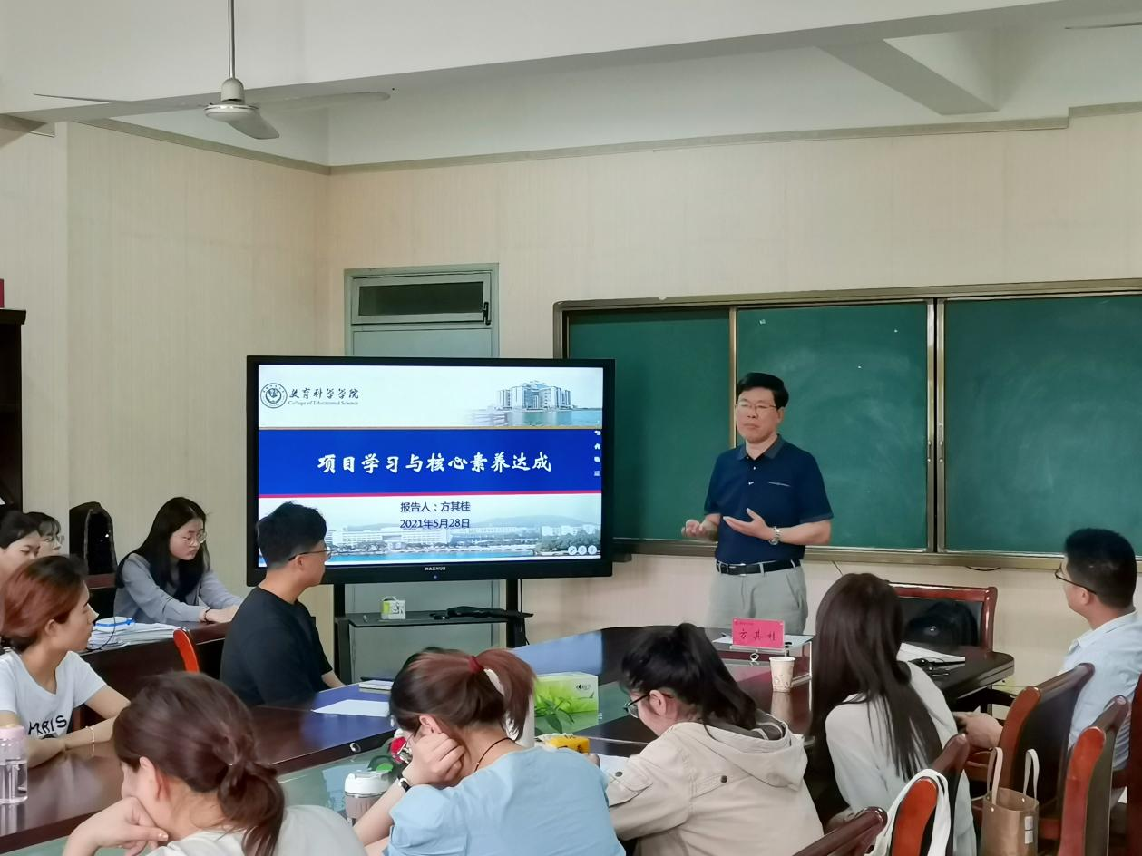 本网讯(教科院 文/康娅婷 图/王薛晴)5月28日下午,安徽省教育科学研究院信息技术教研员,安徽省中小学信息技术教学专业委员会秘书长,安徽省中小学信息技术教材主编方其桂老师应邀来我院做题为《项目学习与核心素养达成》的学术报告。报告在教育科学学院408会议室举行,由我院吴文涛副教授主持,教育技术学与现代教育技术专业研究生到场学习。