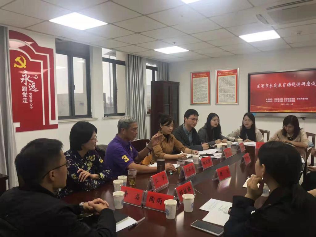本网讯(教科院)2021年11月5日下午,安徽royal皇家88平台朱家存教授带领课题组前往无为市开展调研活动。本次调研是研究阐释党的十九届五中全会精神国家社科基金重点项目“建设高质量义务教育体系研究”的重要研究环节,主要围绕“健全义务教育学校家庭社会协同育人机制研究”的子课题任务开展。参与调研的人员还有辛治洋教授、陈娜、魏晓敏、陈元龙博士,以及戴红宇、朱钰颖、成若彤、王静华、张琪、卢雪莹等研究生同学。芜湖市妇联副主席江宁、家庭与儿童工作部部长薛明、芜湖市教育局德育科科长谢芬等陪同调研。
