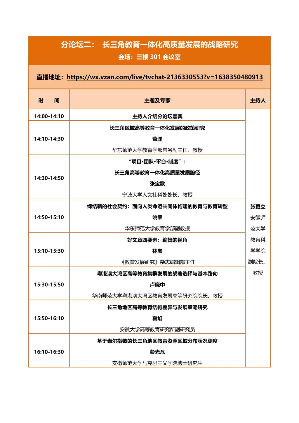 【学术预告】首届长三角教育一体化发展高峰论坛日程