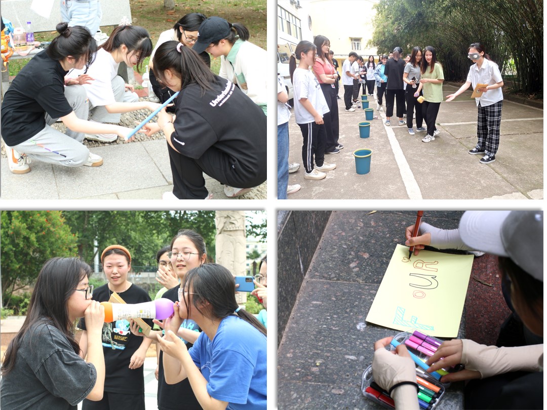 此次益行活动共包含五个环节,各队依次前往不同地点相继开展。同学们在“画名片”活动中想象自己未来的职业,并结合目标对自身大学生涯各阶段进行划分;在“蒙眼投球”活动中培养朋友之间的信任与默契;在“齐眉棍”游戏中增强队员们相互配合、团结协作的能力;在“手忙脚乱”游戏中提高同学们的身体协调性,提升自己对身体素质重要性的认识;在“气球运纸杯”活动中增加团队的默契度,让各队成员领悟到团队协作的重要性。在工作人员的引导下,各队伍有条不紊地完成了各项游戏,现场欢声不断。