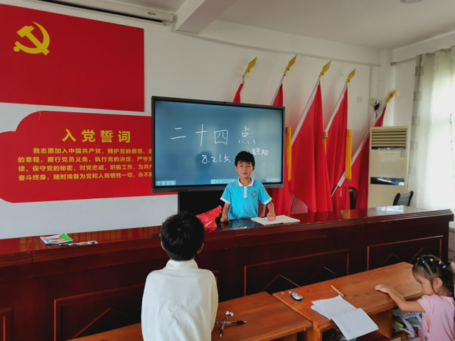 除开展课程教学外,团队还组织开展了多个特色活动。团队在去年的实践积累中了解到东至县处于安徽最南端,地理位置较为偏僻,留守儿童数量较多,且大多性格较为内向,有表达自己想法的意愿,但缺乏这样的机会。在今年的实践过程中,团队在四个实践点铺开“小先生”体验日活动,鼓励每一位同学上台发言,讲述自己了解、掌握的知识。