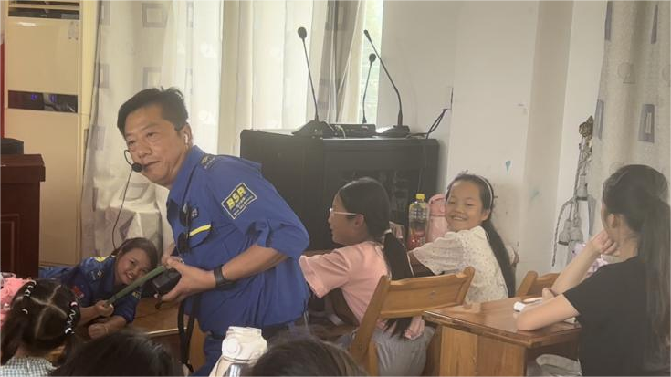 通过观看溺水自救视频结合蓝天救援队的老师的悉心讲解,学生们认真学习溺水自救方法。同时,在实践成员们的带领下,同学们一同欢唱溺水自救歌,牢记“溺水勿自慌,迅速离现场。清除口鼻保畅通,拍打后背让肺畅。若无呼吸人工上,若无心跳挤心脏。 赶紧换上干衣裳,尽快送到病床上。”