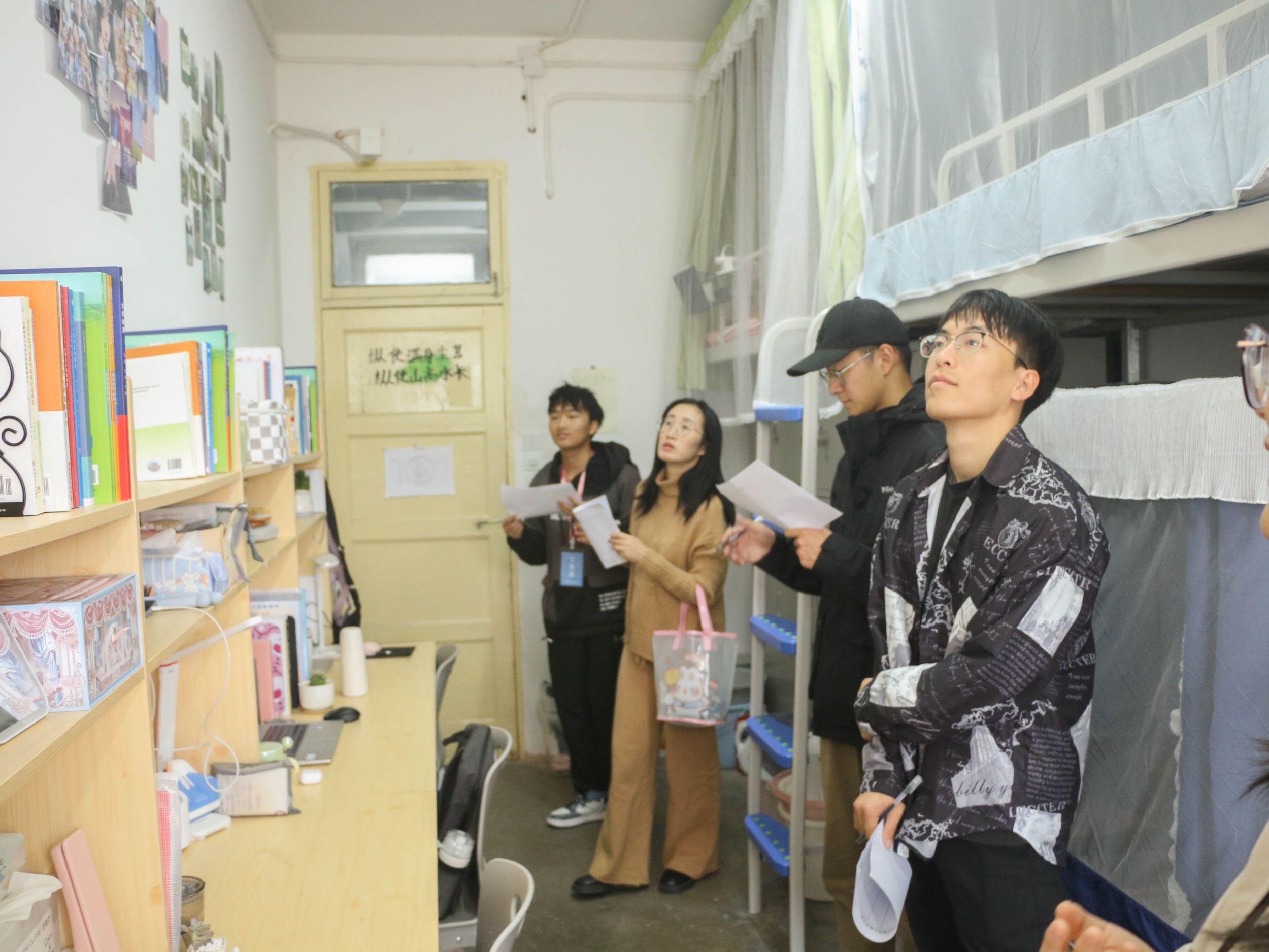 为打造温馨宜居的寝室环境和学风醇厚的教室环境,丰富新生校园生活,2023年11月8日,教育科学学院组织开展了新生寝室、教室设计大赛,对参与寝室和教室展开评比。教科院23级新生积极参与此次大赛并精心准备,院团委书记付银行,23级辅导员金凤仙、刘玉瑾及学生会生活部成员担任此次大赛的评委。