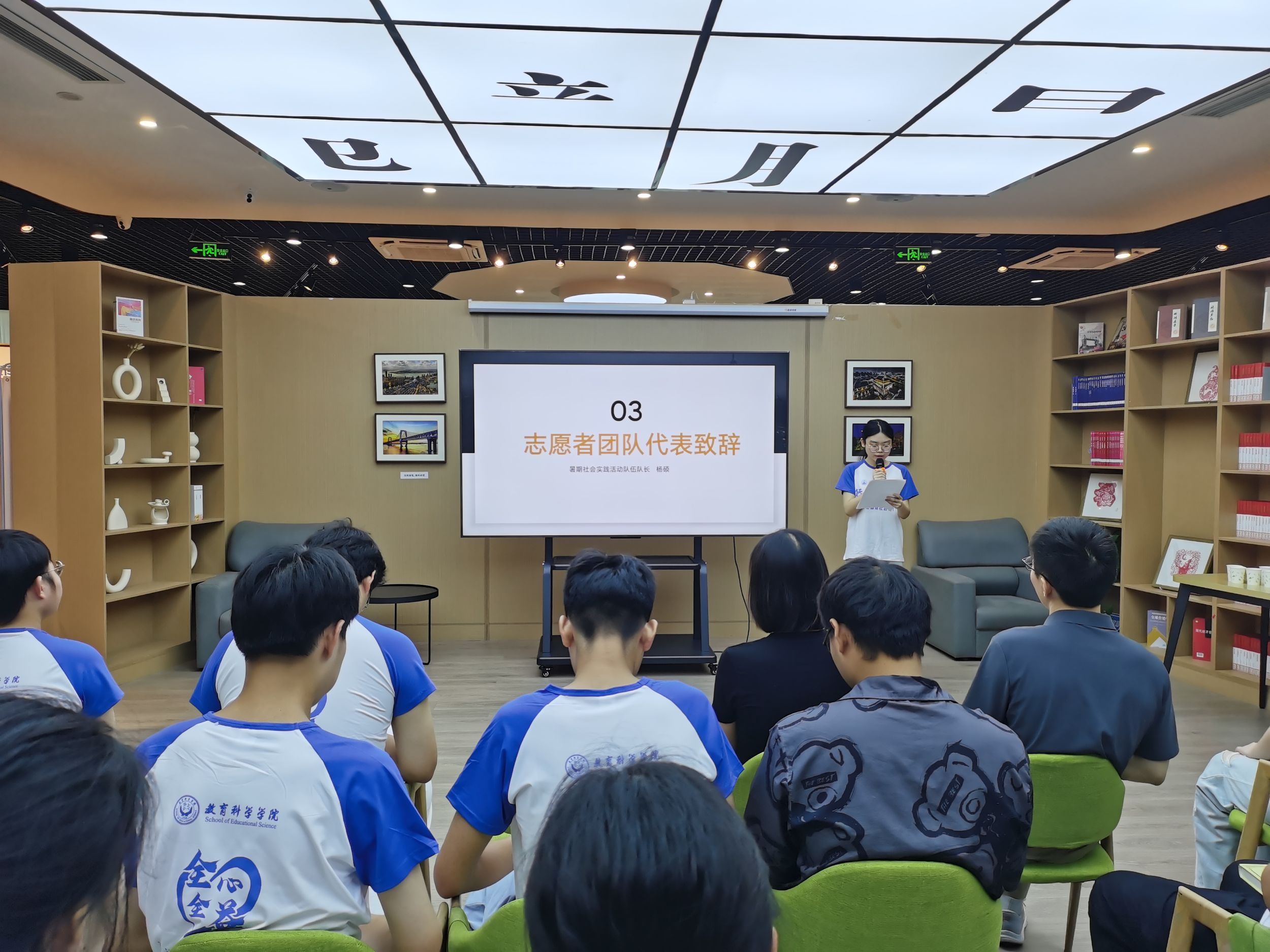 金剑与盛木花共同宣布本次暑期社会实践活动正式开班,全体成员进行合影留念。书苑与实践团队的合作正式开始标志着同学们即将踏上一段充满挑战与收获旅程。