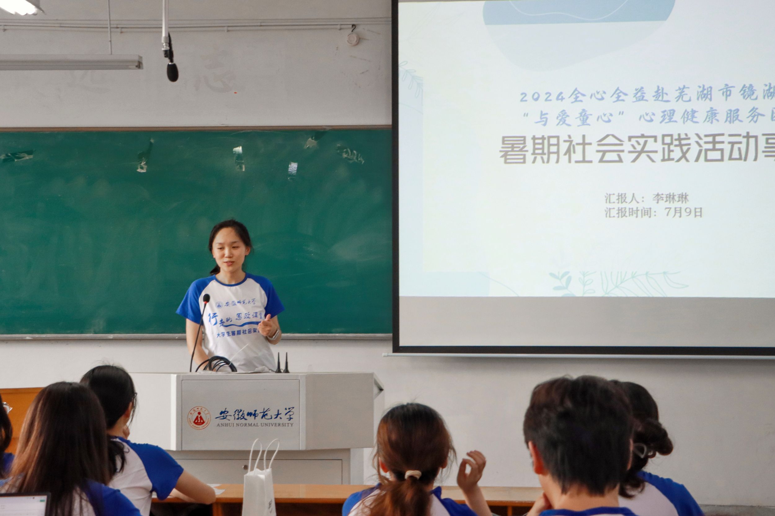 为进一步明确暑期社会实践的主题、目标、内容以及注意事项,使实践队员对实践活动有更清晰的认知和规划。教育科学学院赴芜湖市镜湖区“与爱童心”心理健康服务社会实践团队于2024年7月9日下午,在田家炳教学楼8211教室进行启动仪式,本次活动由队长李琳琳主持,全体成员共同参加。