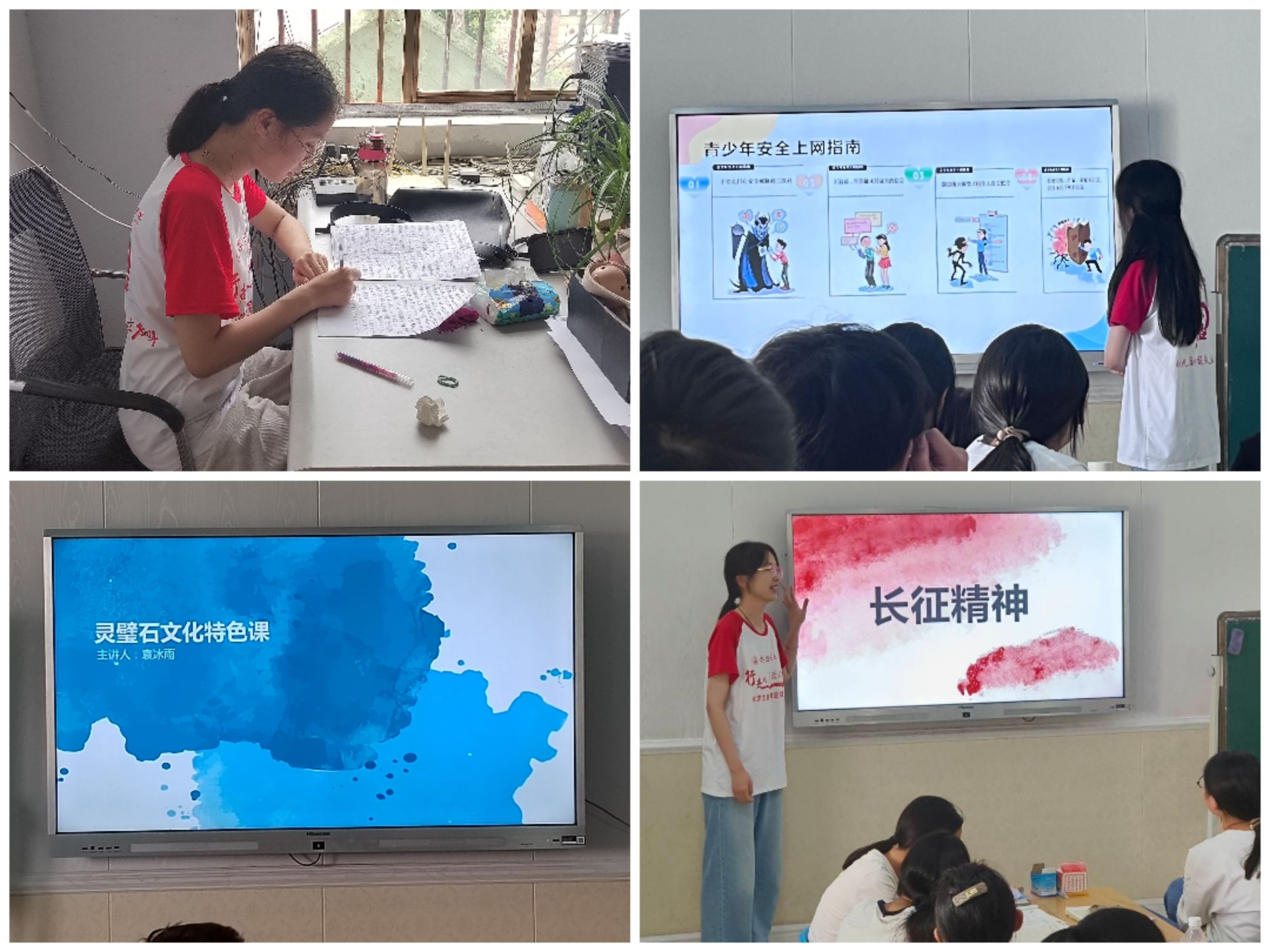志愿者在第一阶段的校园爱心支教中,深入校园进入课堂,以当地儿童与家长的需求为导向,真正做到教孩子愿意听的、讲孩子能接受的,带领学生开展红色精神感悟、心理指导团辅、生态环境保护、安全意识树立、传统文化认识五大核心主题的丰富课程。同时为减轻学生学业压力,贯彻“双减”政策,志愿者根据自身专业特色和自我优势为不同年级的学生提供针对性的作业辅导。
