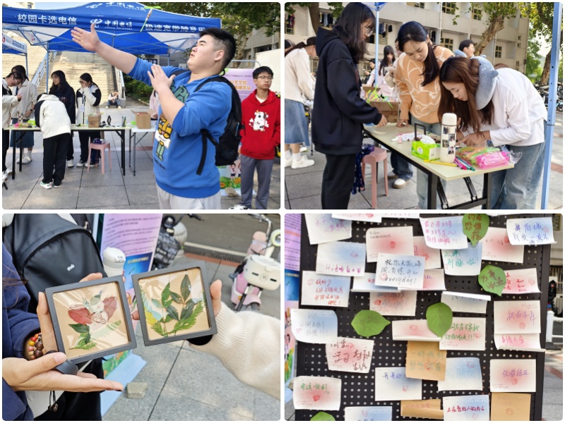 此次主题宣传日活动聚焦“生命教育”与“人际拓展”,设4个体验活动。“秋天的颜色”利用枯叶二次创作让“枯木再逢春”,鼓励学生表达个性和创造力,引导学生看到生命的美好,激发生命创造力;“有缘千里来相会”通过现场接力画掌心,促进学生人际表达,提升学生人际沟通能力;“美好心语树上挂”鼓励学生大胆表达,将心愿便利贴贴在展板,助力心愿大树的“长成”,鼓励学生积极面对生活中的挑战,感受集体的温暖与支持;“心事飞扬”将学生的烦恼通过竹蜻蜓放飞,为学生提供一个释放内心压力和困扰的平台,帮助学生释放负面情绪,减轻心理负担。活动现场还设置了打卡、抽奖环节,学生完成相关活动后可领取学院设置心愿礼物一份,同时参与学校打卡抽奖环节。此次活动共计500余人次同学参与其中。