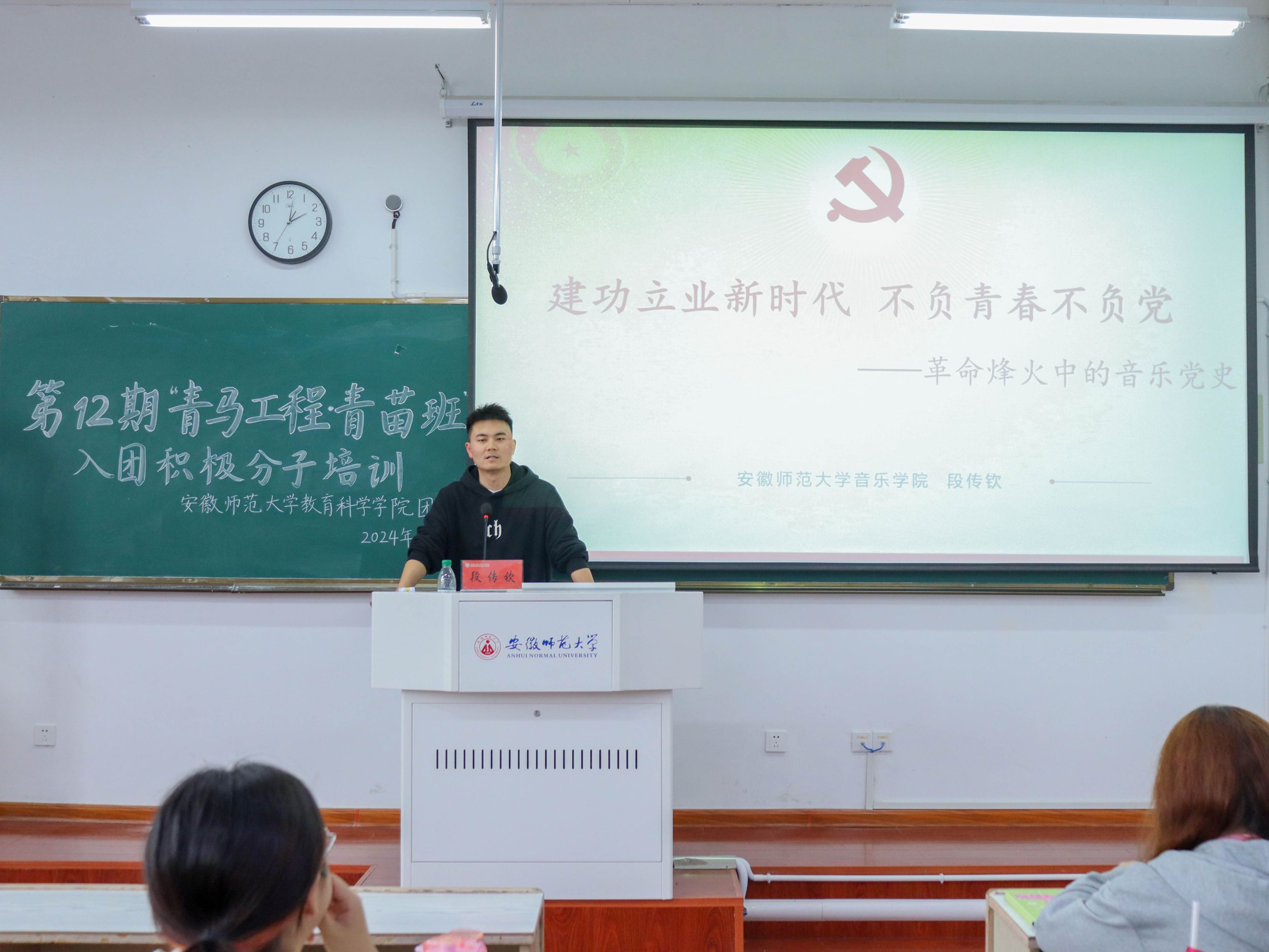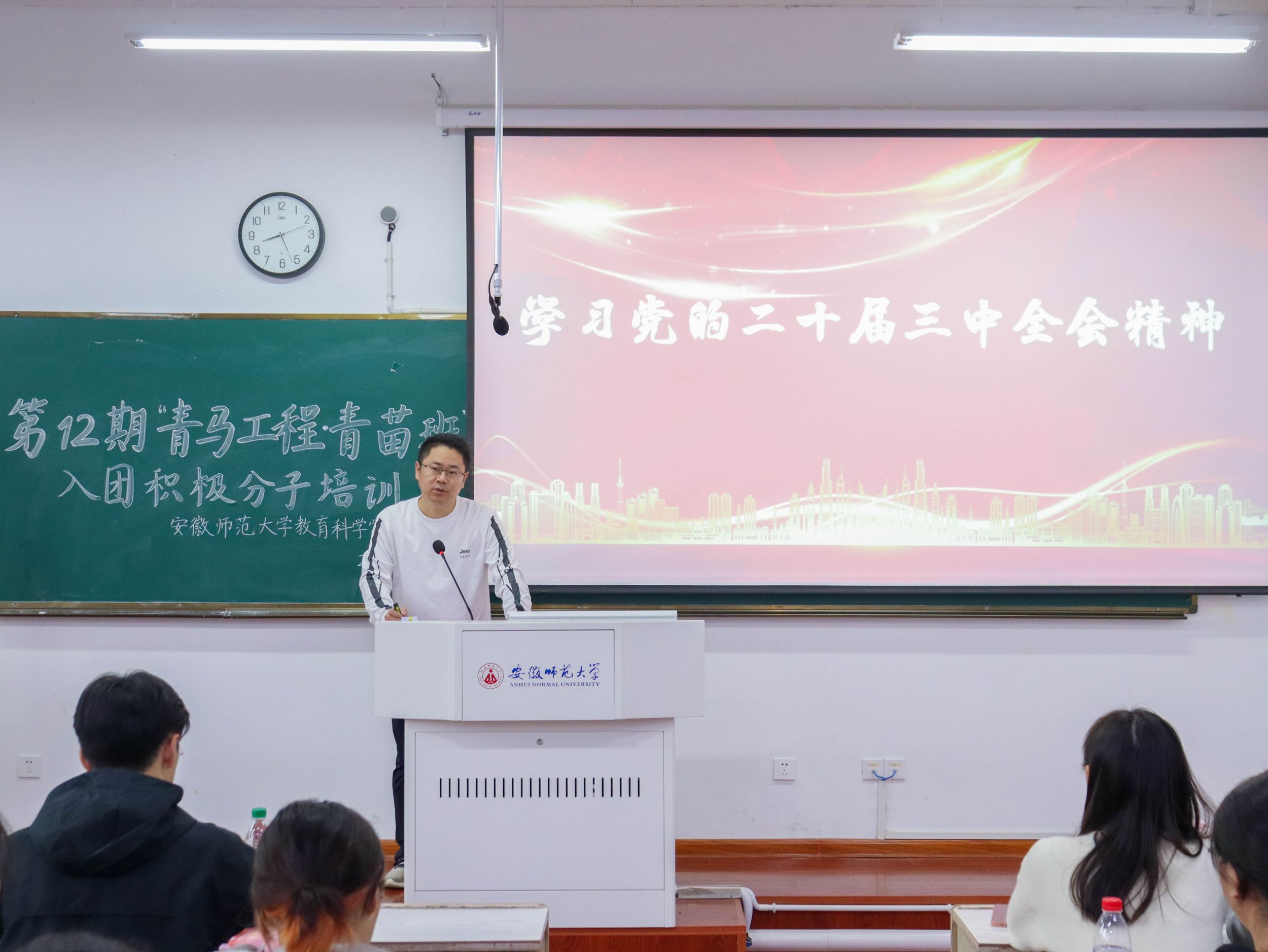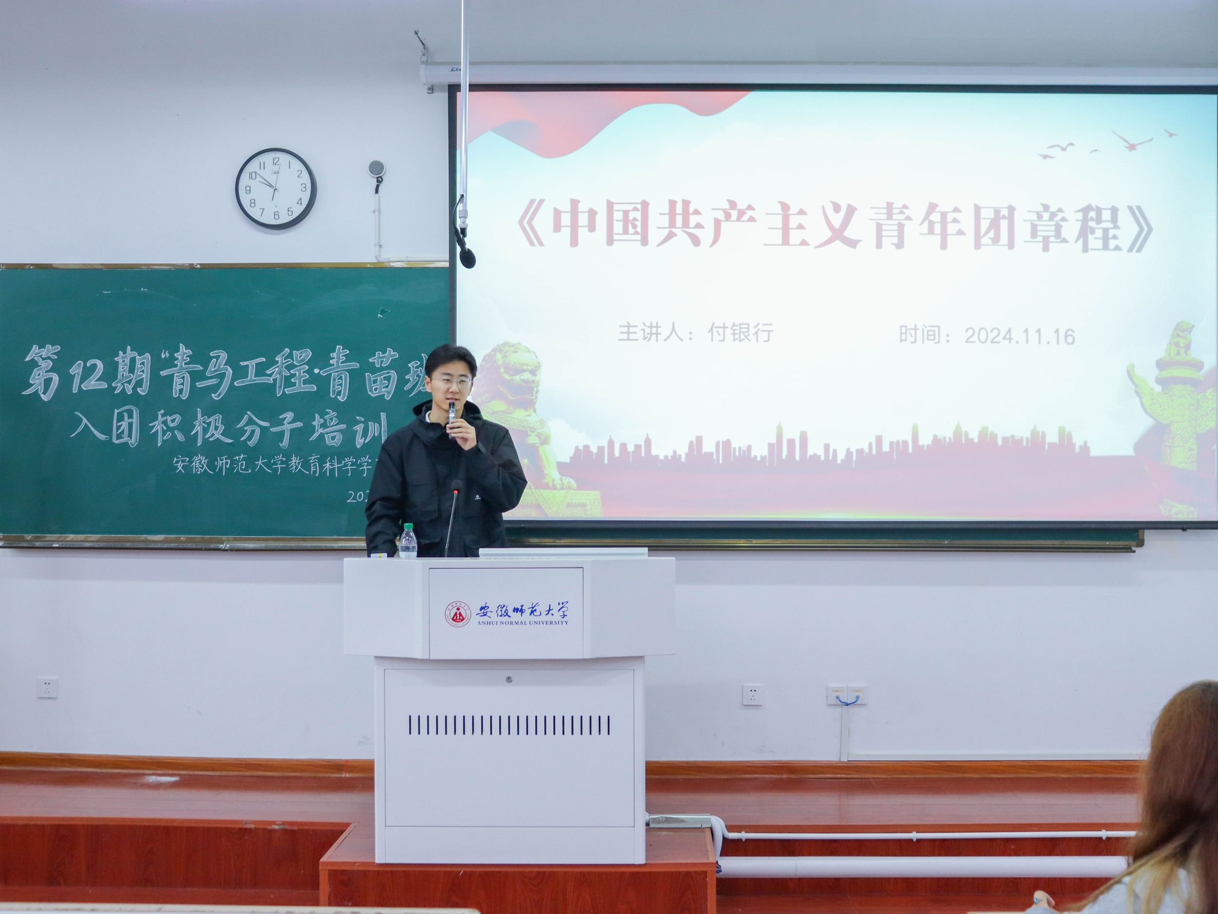 为落实大学生护航行动计划,强化入团积极分子政治觉悟、理论素养。11月16日,教育科学学院于赭山校区教学楼1302室开展第12期“青马工程·青苗班”入团积极分子培训工作。教育科学学院团委书记付银行出席开班仪式,赭山校区各学院入团积极分子参加开班仪式和培训工作。