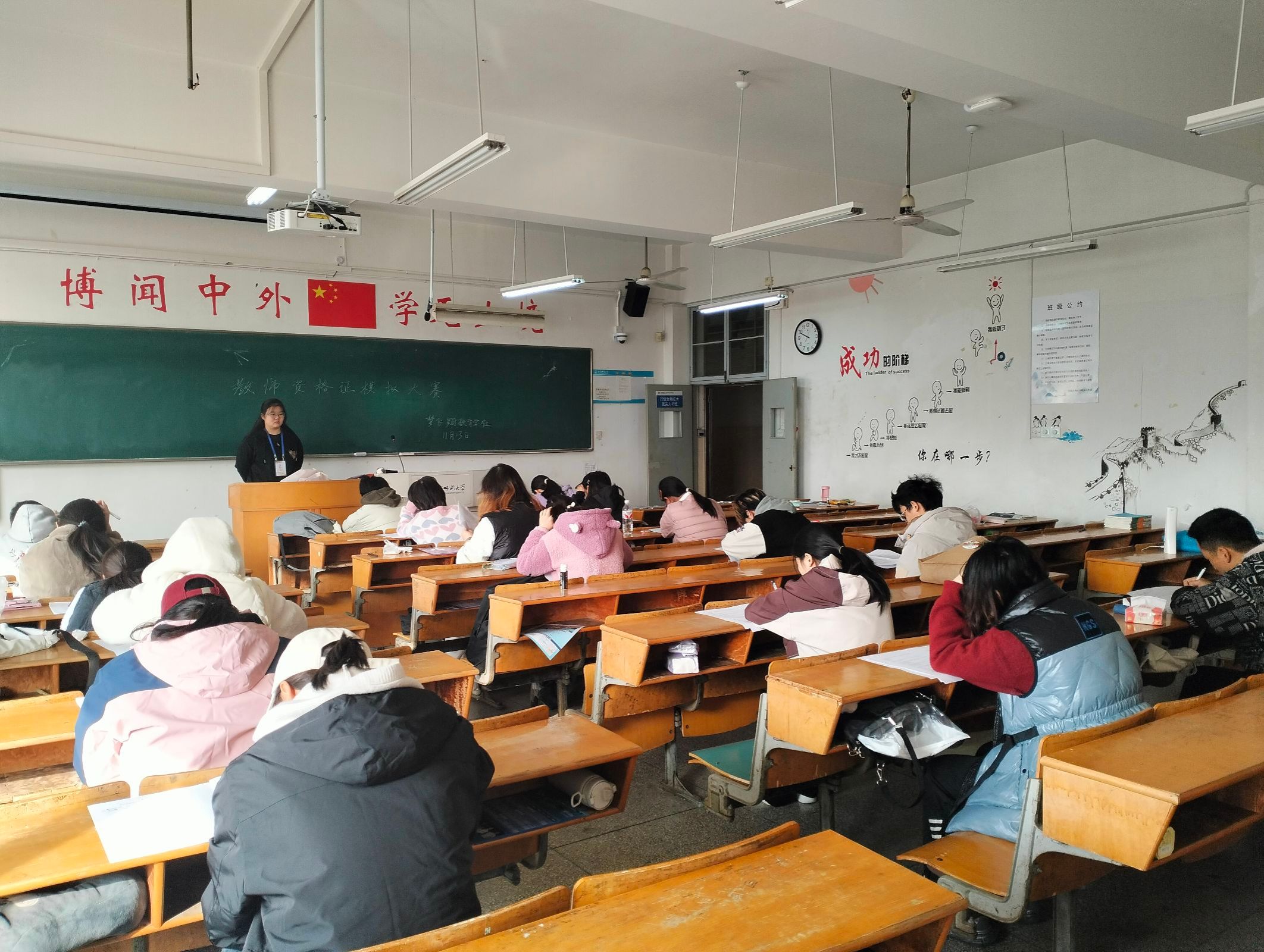 本次比赛分为初赛,复赛,决赛三个部分。初赛以教师资格证的笔试作为比赛项目,考察选手理论知识水平。复赛以撰写教案的形式考察选手专业技能。比赛过程中同学们积极备赛,认真对待。经过初赛和复赛的层层选拔,最终张军豪、龙佳怡等共16位同学进入决赛。