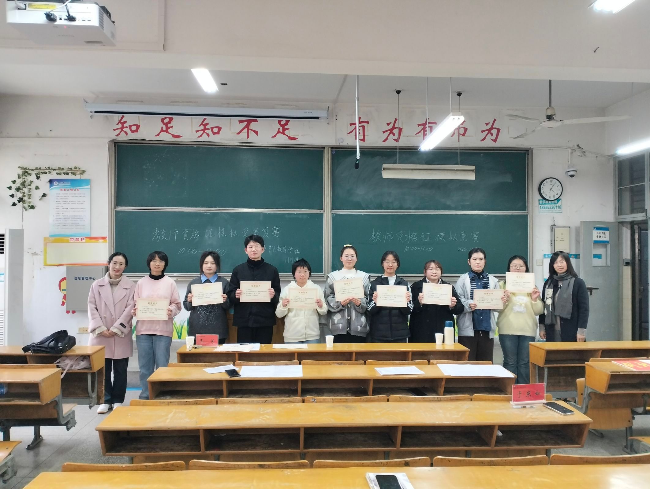 为落实大学生护航行动计划,帮助同学们明确教师资格证考试流程,增长有关教师资格证考试的经验和技能。教育科学学院“梦飞翔”教育学社于11月23日至24日在田楼举办了“教师资格证模拟大赛”活动。本次活动邀请到教育学专业孙德玉老师、小学教育专业负责人王芳老师、心理学专业张冬梅老师、2023级辅导员金凤仙老师担任教师评委,于东如担任学生评委。