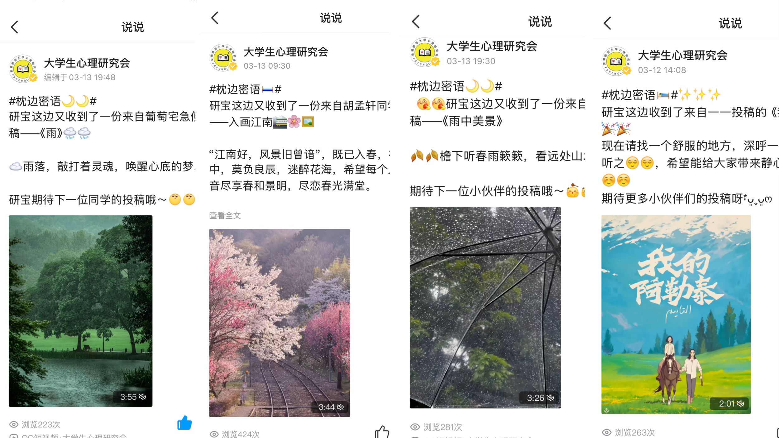 活动伊始,“枕边蜜语”活动吸引了众多同学的目光。参与者们纷纷录制并上传自己精心制作的ASMR音频,内容涵盖了轻柔的耳语、舒缓的敲击声、潺潺的流水声等多种元素,旨在通过这些细腻的声音,为听众营造出宁静舒适的睡眠氛围。
