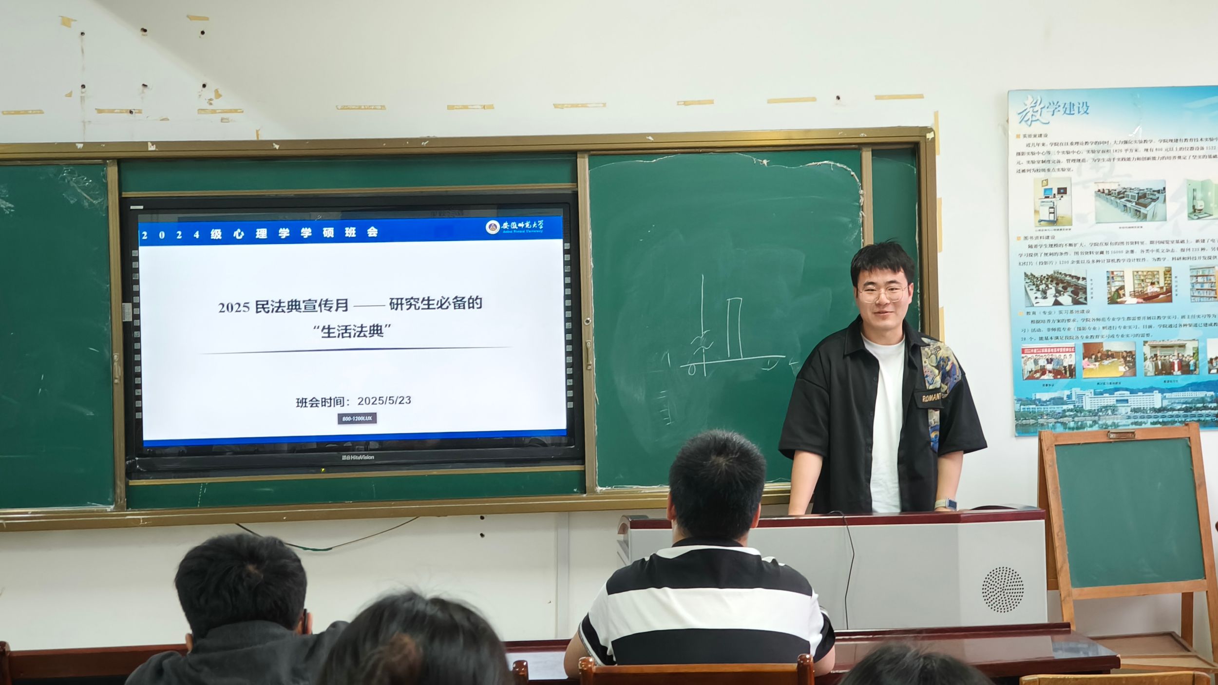 为深入学习贯彻习近平法治思想,增强学院研究生法治素养,教育科学学院研究生各班级于2025年5月召开主题班会,开展民法典宣传活动。