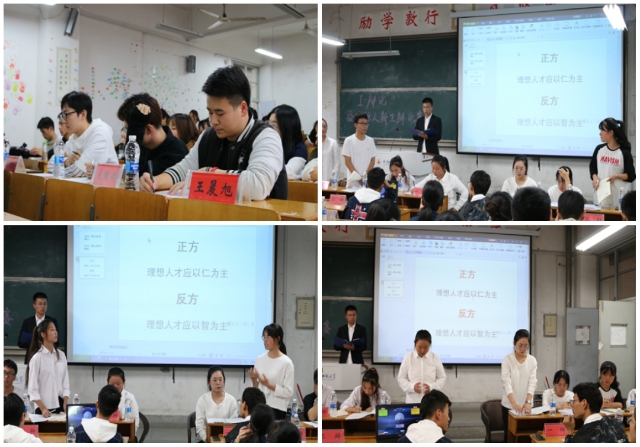 在短暂的休息后,便开始了第二场辩论赛。第二场辩论赛的辩题是:理想人才应该以仁为主还是以智为主。比赛一开始,在表明各自立场后,双方一辩开始激烈的攻辩,比赛节奏慢慢加快,进入到最为精彩和激烈的自由辩论环节。双方辩手思维严密,敏锐地抓住对方的漏洞进行驳辩,引经据典,赢得了在场观众的阵阵欢呼,将比赛节奏带到了最高潮。最后,双方四辩总结论点,为观众答疑,辩论结束。