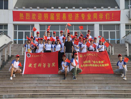 7月21日上午,随着与巢湖学院团队的对接工作完成,安徽师范大学教育科学学院“全心全益”赴和县爱心支教团队活动全部结束。在此次实践活动中,全体志愿者用行动践行了“一学一做”,给孩子们带上了梦想的翅膀,也提升了自身的综合素质。团队志愿者们在实践中发现了自身价值,用自己的实际行动为“辉煌七十年筑梦新时代”贡献力量。