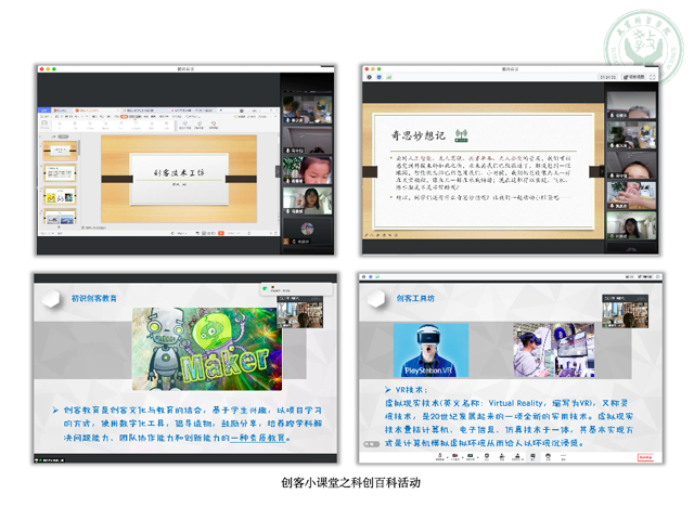 创客小课堂之科创百科——理论宣讲活动分别针对不同年级学生于8月9日、8月15日分两次顺利举行。志愿者段鑫媛、黄丽卉通过结合图片、动画和视频等媒体形式进行科创主题的线上理论宣讲。