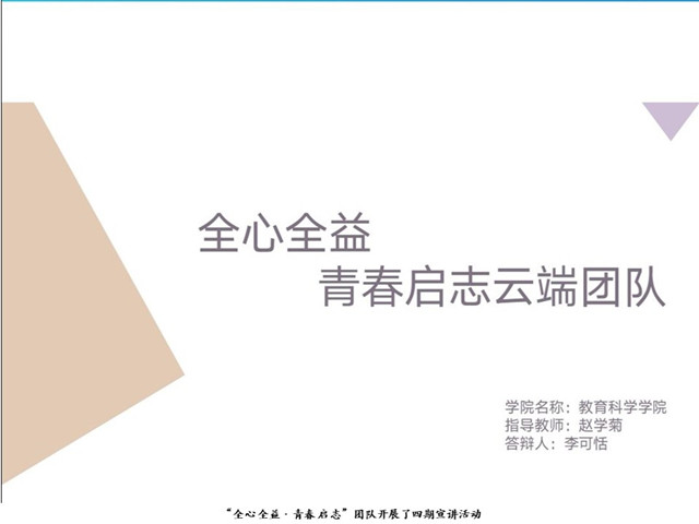 通过四次宣讲,教科院“全心全益·青春启志”主题宣讲云端团队收获了宣讲视频、系列故事汇编、学生心得等成果。该团队利用有限的宣讲次数展现了各级群众干部、政府国家的责任与担当,对观看聆听的学生产生了积极正面的影响,充分发挥了新时代青年人的示范作用。教科院将继续鼓励学生尽己之力,为社会主义发展做贡献,展新青年之风貌。