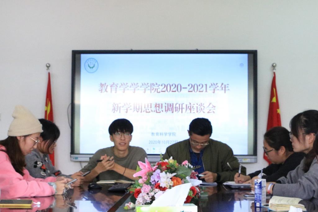 本网讯(教科院 何静涵 杜安)为进一步加强院团委学生会同各班级的联系,促进新学期学生工作顺利开展,10月27日13时,教育科学学院团委学生会于田家炳教育书院B座308会议室召开了2020-2021学年新学期思想调研座谈会。院团委书记程啸,学生团委副书记李可恬,团委学生会主席刘玉瑾、副主席卢皓玮、生活部全体成员及教科院各班班长、生活委员参与了本次会议。