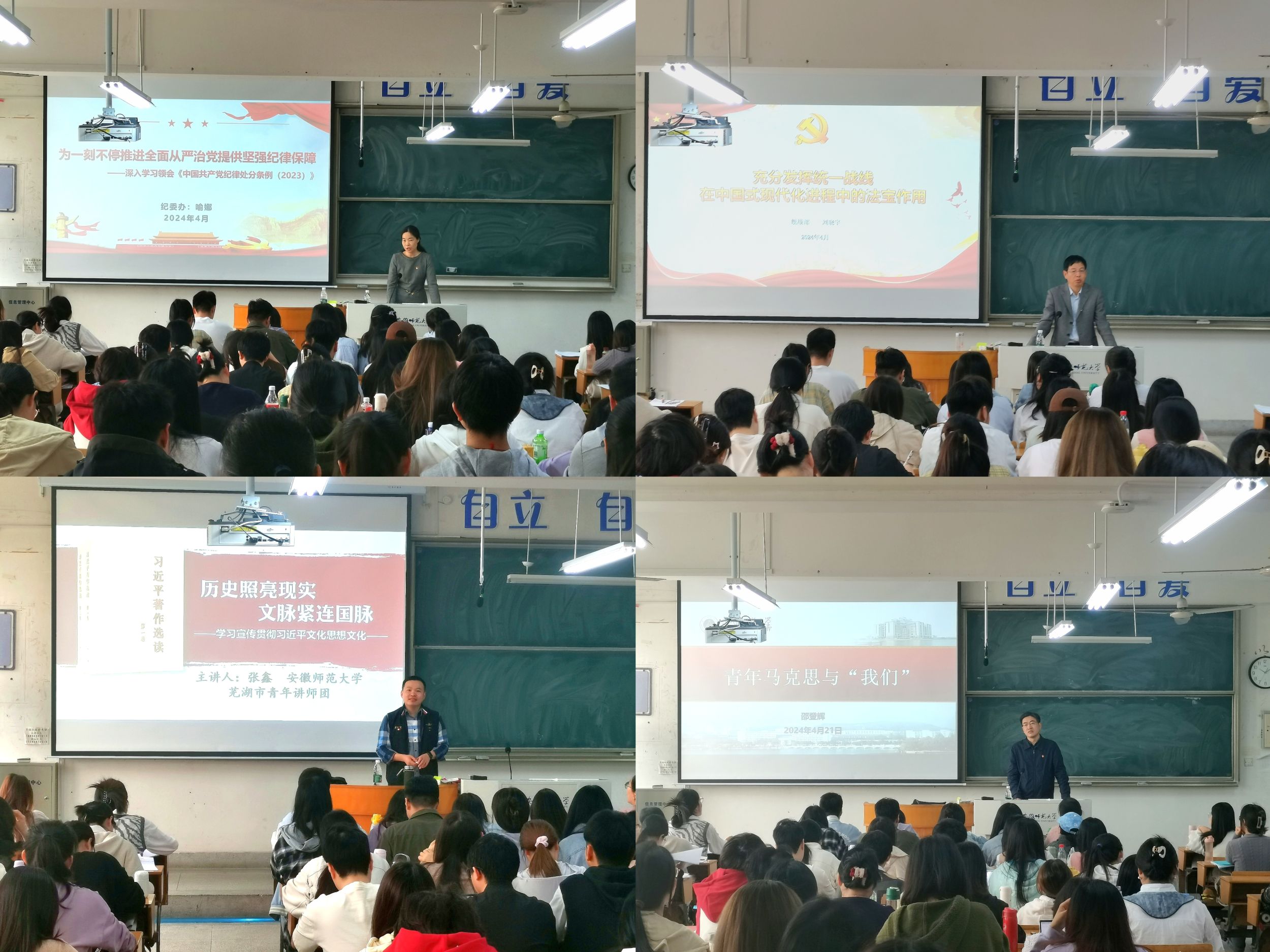 4月20日下午,院党委副书记杜凤、分党校班主任赵茜以及全体培训班同学参与开班典礼。随后,专家老师结合主题为学员们带来精彩丰富的理论授课。校纪委办公室纪检监察室主任喻娜带领大家深入学习领会《中国共产党纪律处分条例》,告诫学员们绷紧纪律之弦,做合格共产党员;校统战部常务副部长刘晓宇给大家解读了统一战线在中国式现代化进程中的法宝作用;马克思主义学院副教授张鑫以“历史照亮现实,文脉紧联国脉”为主题,带领大家学习宣传贯彻习近平文化思想;学生工作处处长邵登辉带领大家走近青年马克思,勉励大学生珍惜时光、勤奋求学。这些理论课程不仅帮助学员们增强对党的理论知识的学习和理解,同时也提高了同学们的党员意识、进一步锤炼党性修养。