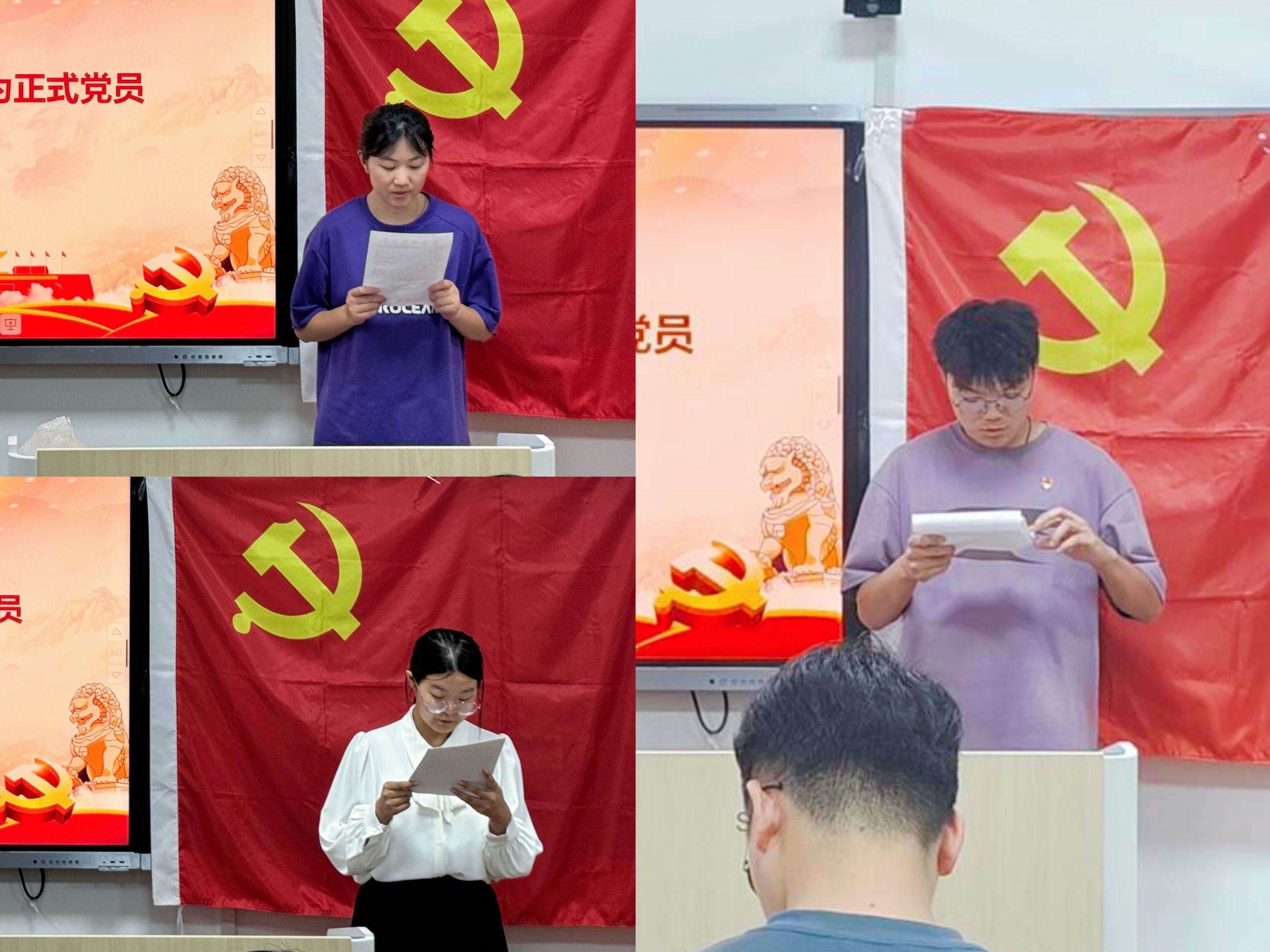 在转正大会上,张理强重申了预备党员转正的要求与程序,大会采取“逐一汇报,逐一表决”的方式进行。七位预备党员王榕耀、马冰月、李睿婳、张萌、马梅、李警予、谢家磊逐一汇报自身在预备期间的表现,并对自己在思想、学习、工作和生活上的进步与不足作了认真的总结。入党介绍人汇报了七位同志在预备考察期间的综合表现,支委会报告了预备党员的综合考察情况,各与会党员分别就七位同志能否转正进行充分讨论。经支部大会无记名投票表决,一致同意七位同志按期转为中共正式党员。