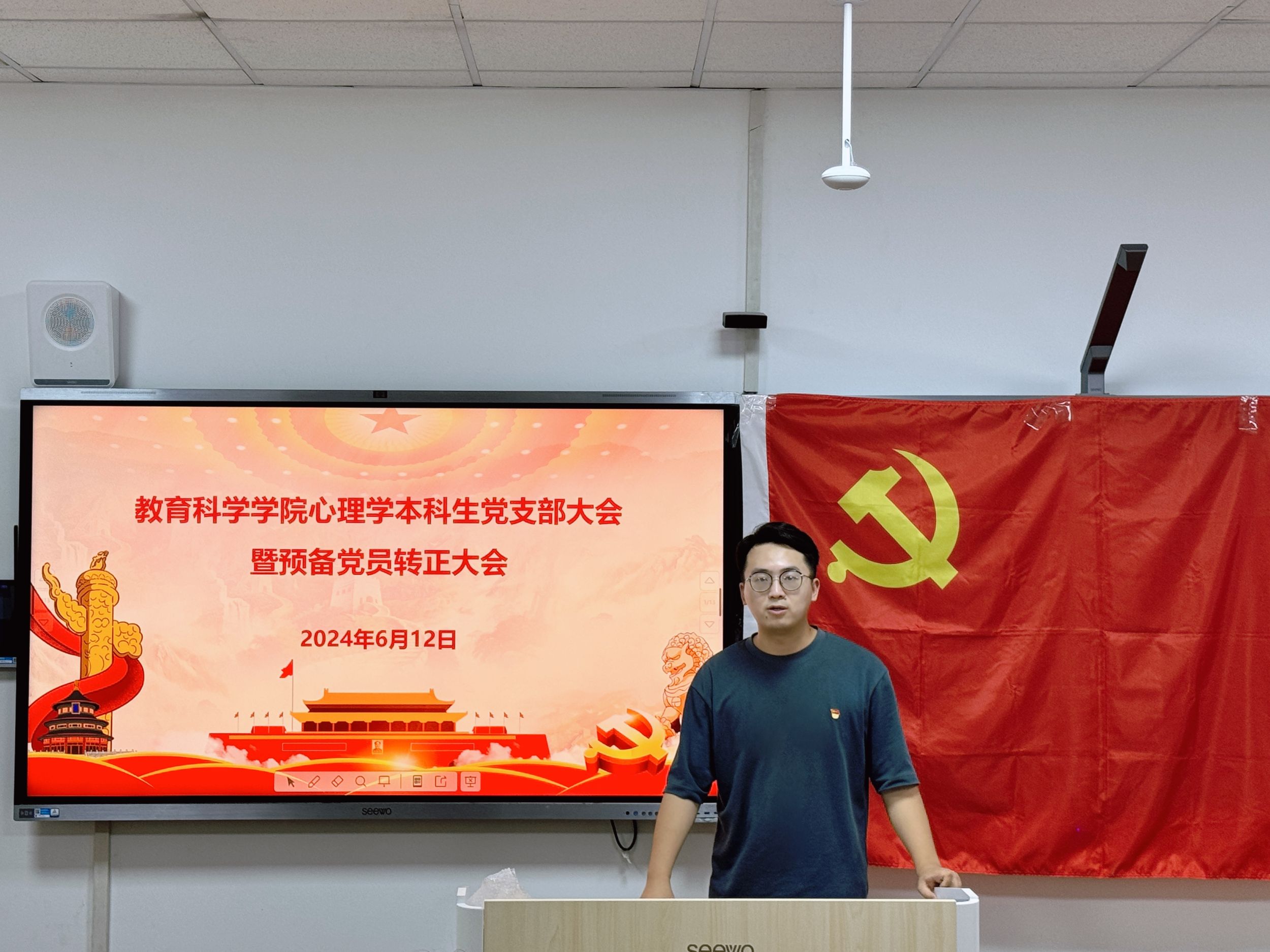 为进一步推动党员队伍建设,2024年6月12日下午,教育科学学院心理学本科生党支部于田楼8605教室举办2024年上半年预备党员转正大会暨专题组织生活会。支部全体党员参加会议,会议由党支部书记张理强主持。