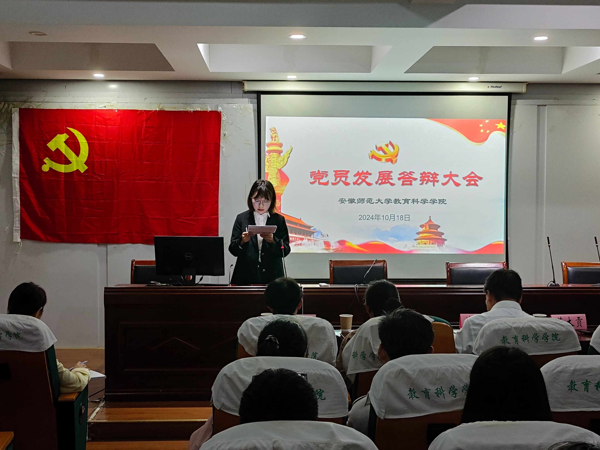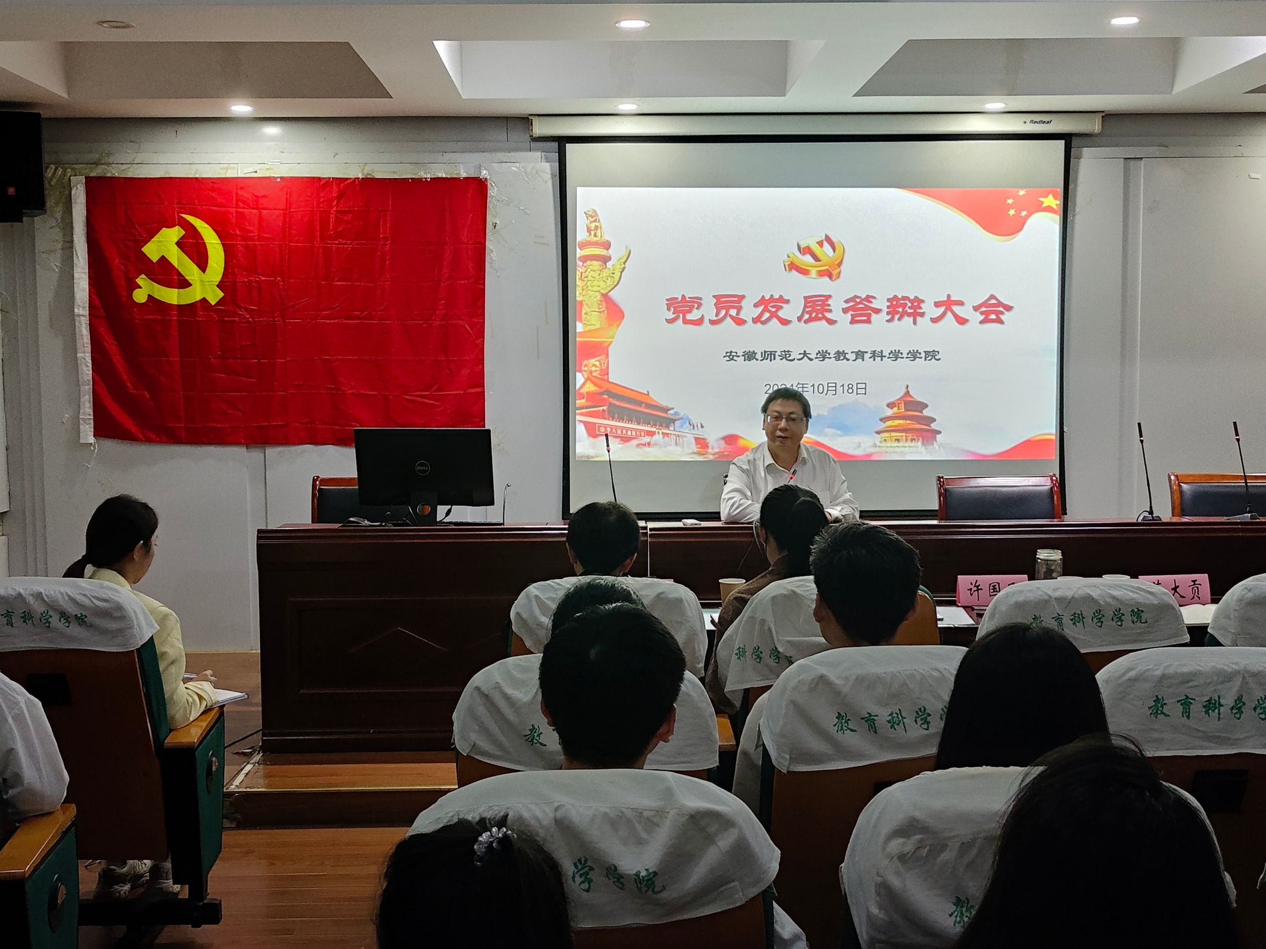 为严格把控党员发展“入口关”,确保党员发展质量,为党组织注入新鲜血液,教科院教育技术学、心理学、教育学、教育硕士第一、第二五个研究生党支部于10月18日下午16:00在教科院313开展2024下半年研究生党员发展答辩大会。院党委书记许国飞、组织员兼党委秘书袁黎平、教育技术学研究生党支部副书记丁晓云及23级研究生辅导员莫大贡组成答辩委员会,研究生入党积极分子代表参加会议。五个支部共10位入党积极分子参加此次答辩,会议由教育技术学研究生党支部书记张怡雯主持。