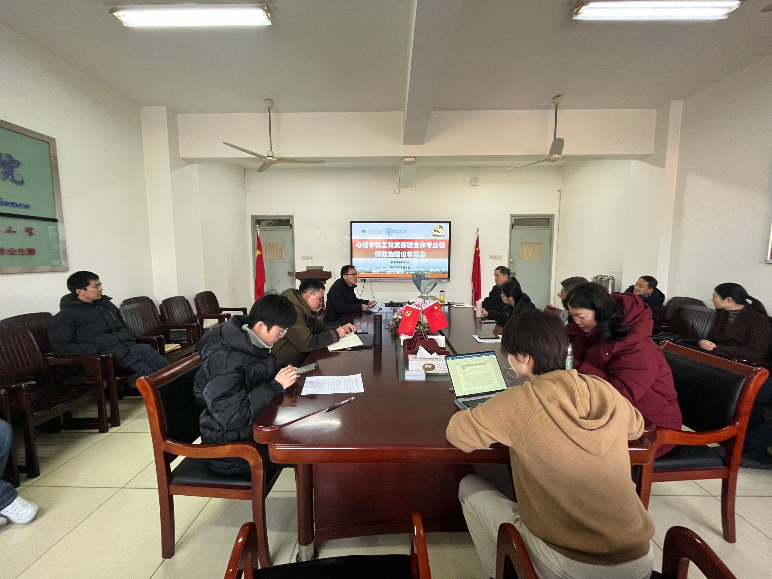 为深入学习贯彻习近平新时代中国特色社会主义思想,进一步加强党组织建设,提升教职工的思想政治素养,2025年1月3日下午,心理学教工党支部暨全体专业教师政治理论学习会在学院308会议室召开。会议由支部书记、专业负责人王礼军主持,全体支部党员和专业教师参加本次学习会。