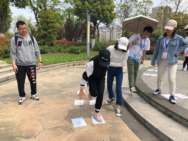 上午8点半,益行活动正式开始。百人师生团分列两队向目的地雕塑公园出发。伴着明媚的阳光,大家一路欢声笑语,经过50分钟步行,最终抵达雕塑公园。在随后的“趣味探索活动”中,同学们共同参与了五个游戏。“我和雕塑合张影”要求同学们在有限的时间里找到指定雕塑并根据特定动作进行合影;高难度项目“无敌风火轮”主要考察同学们的团队协作能力,小组成员置身于用报纸拼接好的圆环内,喊着整齐响亮的口号,小心翼翼地前行至终点;在“吸管大作战”中,同学们逐渐找到吸管传递环扣的技巧,轻松完成游戏;“手脚要正确”是个考验身体协调能力与灵敏度的游戏,小组成员手脚并用、相互搀扶、掌握平衡,现场笑声连连;考察记忆能力的“十二生肖大乱斗”更是让大家合作的喜悦。最终每一组参赛选手都领到了班委会赠送的图书,希望大家做到学思并重。
