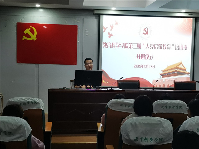 本网讯(教科院 詹洁)十月金秋送爽,教科院“入党启蒙教育”培训班迎来了新一批00后。10月13日晚第三期“入党启蒙教育”的第一次活动在学院学术交流中心顺利举行。学前教育本科生党支部书记龚伟老师、全体驻班党员以及2019级启蒙班成员参与了此次活动,活动由龚伟老师主持。