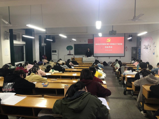 为把好党员发展“入口关”,确保党课培训成果,检测入党积极分子的学习成效,11月13日晚7点,教科院第29期入党积极分子培训班65位学员于8410教室参加入党积极分子培训班结业考试,由培训班班主任龚伟老师、副班主任谭茹轩老师进行监考。全场考试采取闭卷限时的形式,根据培训内容,结合时事政治,以党章为依据,辅以十九大报告等内容考察。学员们认真作答,态度端正,考场秩序井然,充分展现出我院学子严于律己的优良作风。