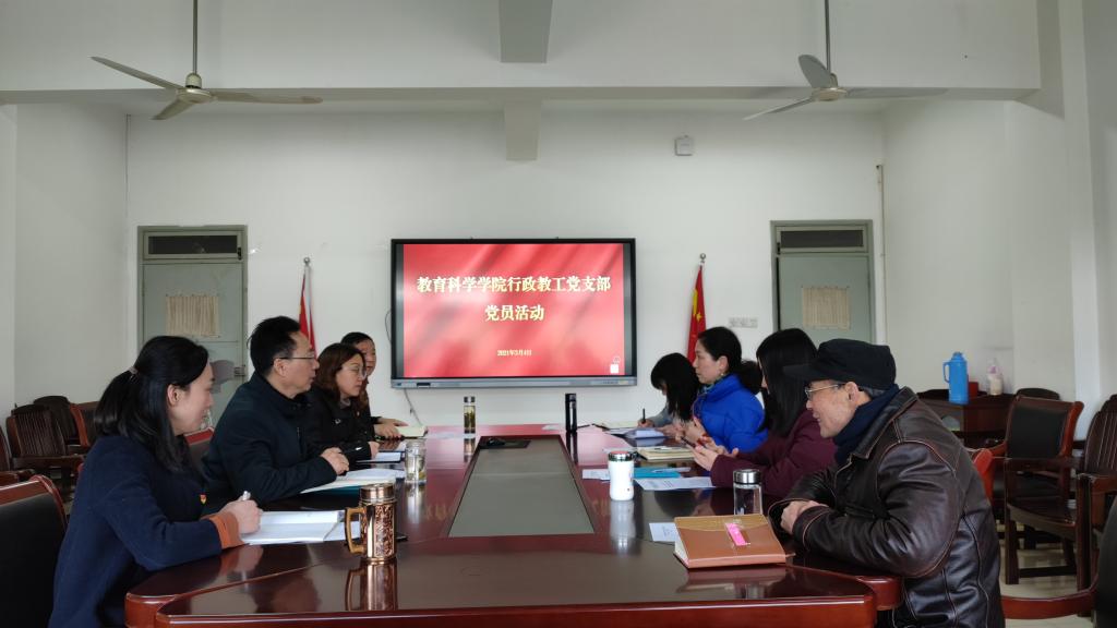 本网讯 (教育科学学院 黄引娣/文 程啸/图 )3月4日上午,院行政教工党支部在学院308会议室开展党员活动,支部全体党员参加了本次活动,活动由支部书记卞纲要主持。