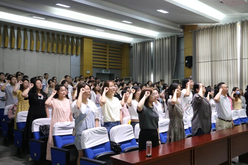袁黎平带领全体党员面对党旗宣誓,师生党员在重温誓词中进一步坚定了理想信念。本次会议在洪亮的国际歌中圆满结束,毕业班党员将带着不变的初心与信仰奔赴祖国各地,新发展党员也将牢记使命与担当,传承好党的意志与精神。立足建党一百周年伟大历史节点,教科院加强学生党员培养,为毕业班党员上好最后一次党课,厚植党员爱党爱国爱校情怀。