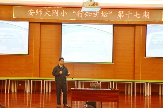 2014年4月2日下午,安徽师范大学附属小学成功举办了第十七期“行知讲坛”。本期论坛邀请安徽royal皇家88平台袁同庆老师担任主讲,以《翻转课堂与微课设计制作》为主题进行了近2小时的专题报告。报告从信息时代的学习、翻转课堂的兴起和微课的设计与制作三个方面详细展开,内容深入浅出,资料翔实丰富。专题报告给师大附小老师带来了教育发展的新信息,对进一步推进附小课堂教学改革带来了新视角,引发了一线教师对教学过程的新思考。