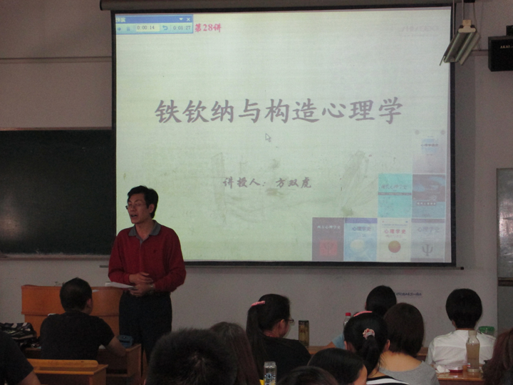 报告中方双虎教授旁征博引、妙语连珠,对铁钦纳的生活轨迹作了详细阐述,生动再现了其特立独行的一生。论述了构造心理学的思想渊源和基本理论,并结合构造心理学的历史命运分析了对当今心理学研究的启示:心理学的研究要做多元化、生活化的道路。